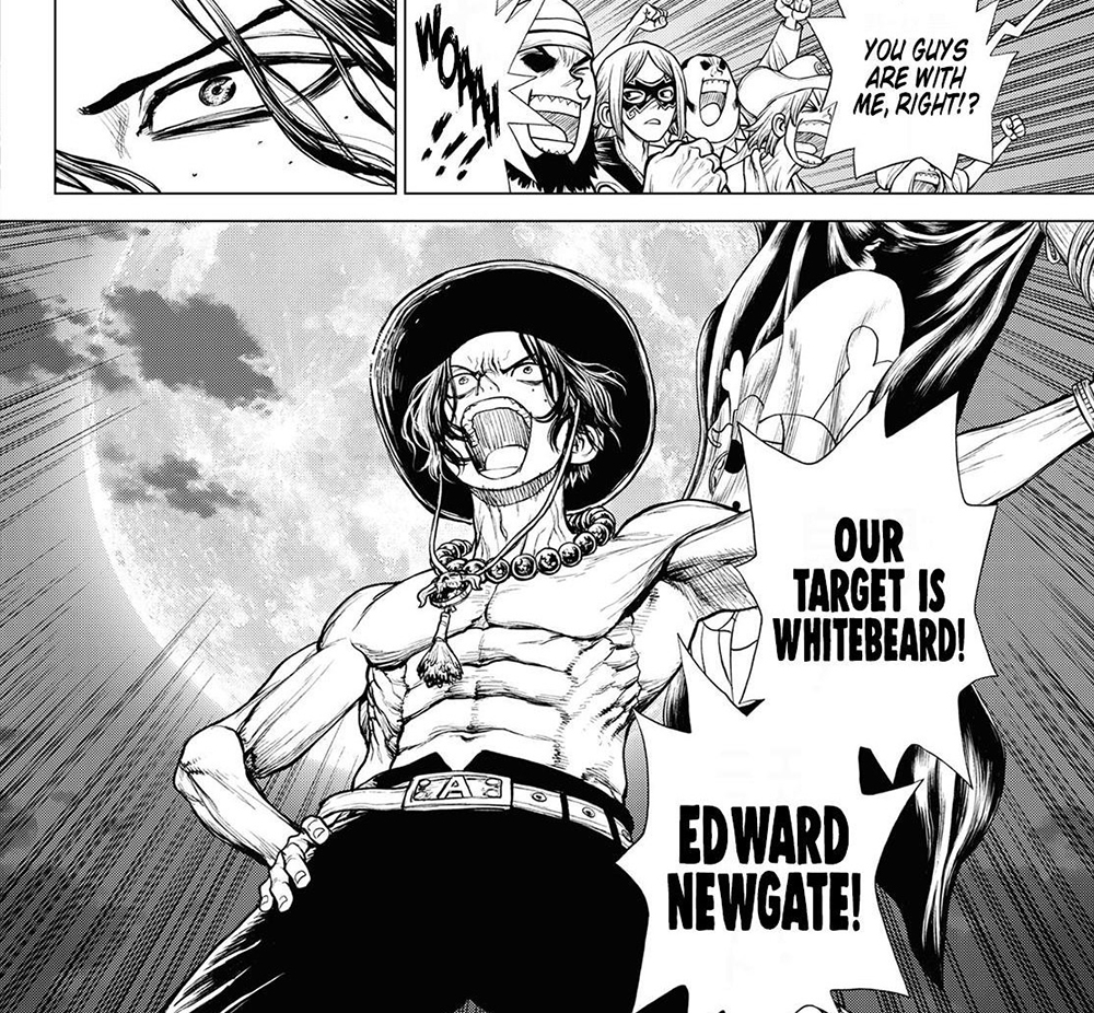 El arte de Boichi es dinámico, detallista y bello en general, aunque algunos momentos de acción me hubiera gustado verlos más claros, sinceramente. En cualquier caso, me gusta ver la representación que hace el cocreador del maravilloso manga Dr. Stone de algunos personajes tan importantes en One Piece como pueden ser Barbablanca (Shirohige), Rayleigh, Zoro, Mihawk, Nami y Califa entre otros. Por cierto, estos cuatro últimos los muestra en unos capítulos especiales recreando la mítica batalla en el Baratie entre el cazador de piratas contra el mejor espadachín del mundo, así como también la navegante de los Sombrero de paja contra la agente del CP9, y de verdad que los plasma de maravilla. Es precisamente por el arte de Boichi por lo que merece la pena el acercamiento a estos dos tomos.